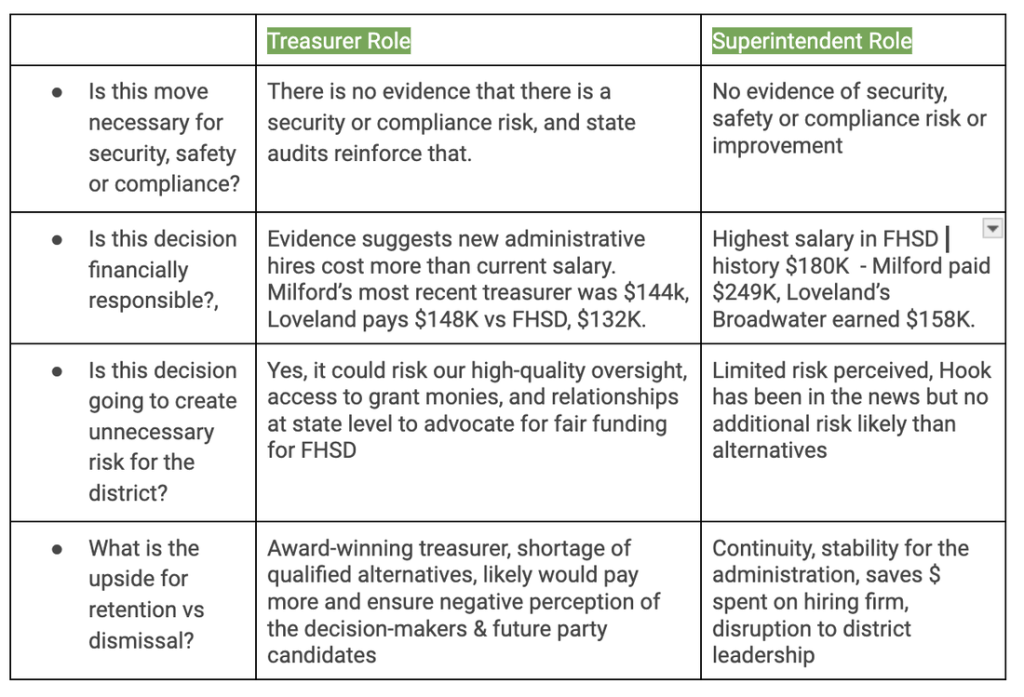 The team at AdvocateFHSD discussed, and came up with a working hypothesis, based on input from former board members and community members. We’ve had our eye on actions around these two contracts since late last year — which inspired our January blog post — since the board is only responsible for hiring the two roles of Treasurer and Superintendent.